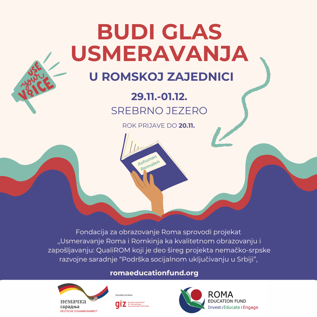 POZIV ZA OMLADINSKE SARADNIKE I SARADNICE Fondacija za obrazovanje Roma poziva sve mlade Rome i Romkinje, kao i korisnike REF-ovih programa da nam se pridruže na predstojećem događaju povezivanja, koji se organizuju u sklopu projekta “Usmeravanje mladih Roma i Romkinja ka kvalitetnom obrazovanju i zapošljavanju”. Trodnevni seminar za mlade Rome i Romkinje se organizuje sa ciljem [Read More]